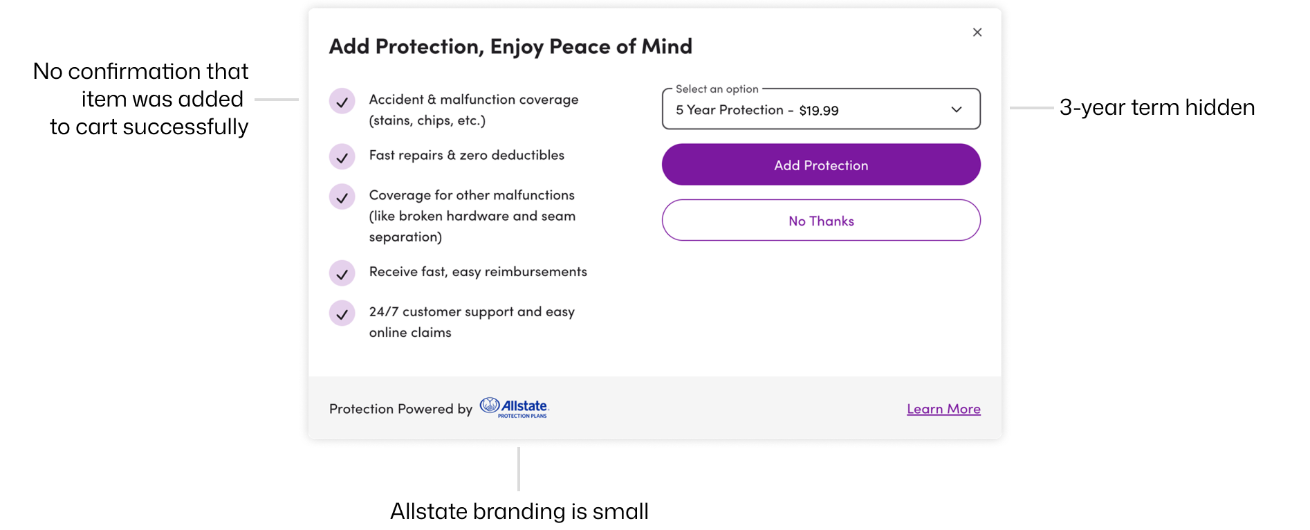 Protection Plan modal